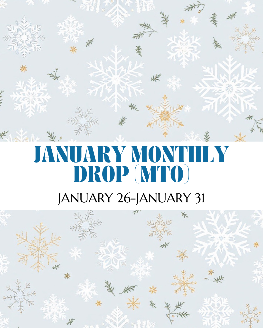 The January monthly drop (MTO) is CLOSED! Our next preorder will be February 27. Join the FB group for updates! ⬇️